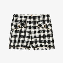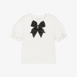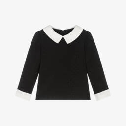 This ivory blouse for girls by Abel & Lula features a beautifully scalloped collar with contrasting black trim. Adding a classic touch to any outfit, it is made from lightweight chiffon, with long sleeves and neatly concealed button fastenings. A decorative black bow adds an elegant finishing touch.