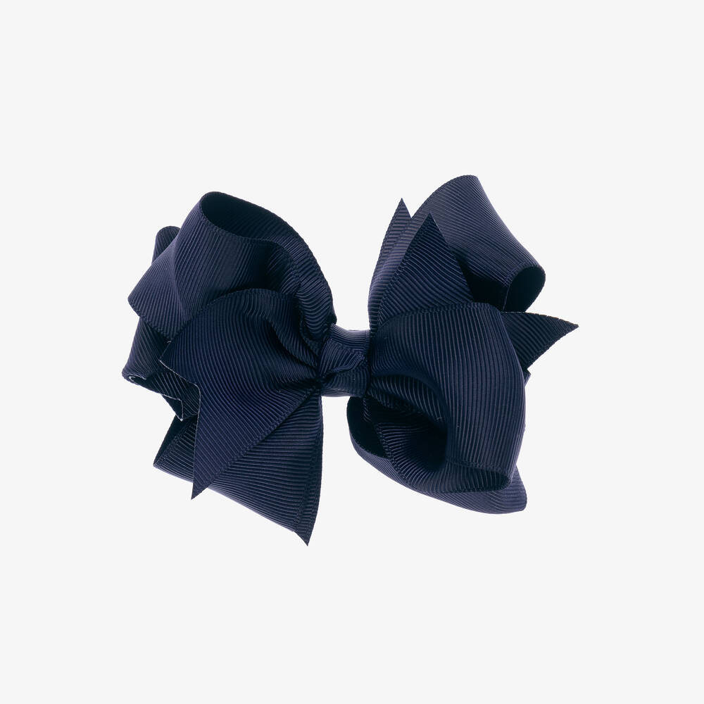 Navy blue hair clip for girls by Abel & Lula, topped with a grosgrain bow, a wonderful finishing touch to any outfit. The clip is also covered in navy blue grosgrain and is lined in rubber to help it sit securely.