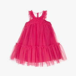 A gorgeous dress for girls by Spanish brand Abel & Lula, designed in a bright pink and white stripe. Ideal for a special occasion this soft and silky dress has a full pleated skirt and a removable pink belt with a large bow attached by poppers. There are button fastenings on the back and a soft, lightweight lining with a tulle layer for added volume.