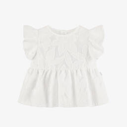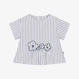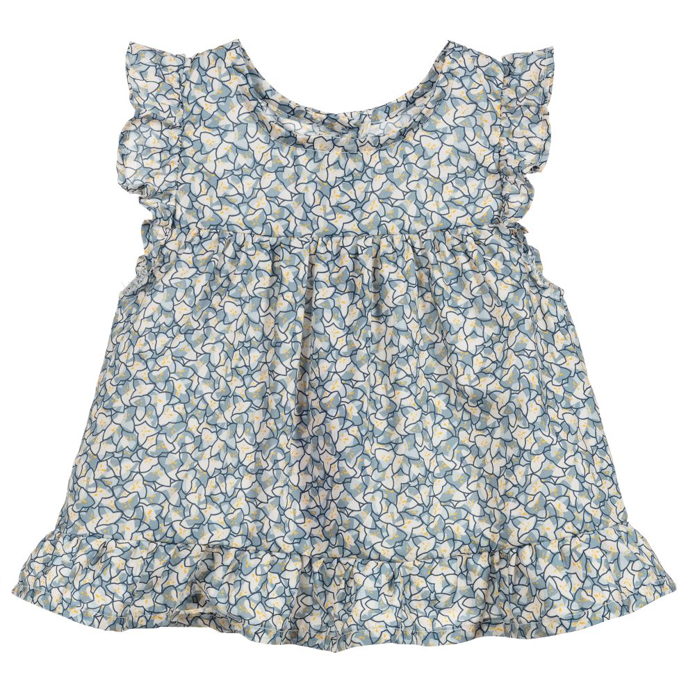Little girls delightful Liberty print blouse from Absorba. Made in soft and lightweight cotton poplin, with a blue floral print a frilled hem and back button fastening.