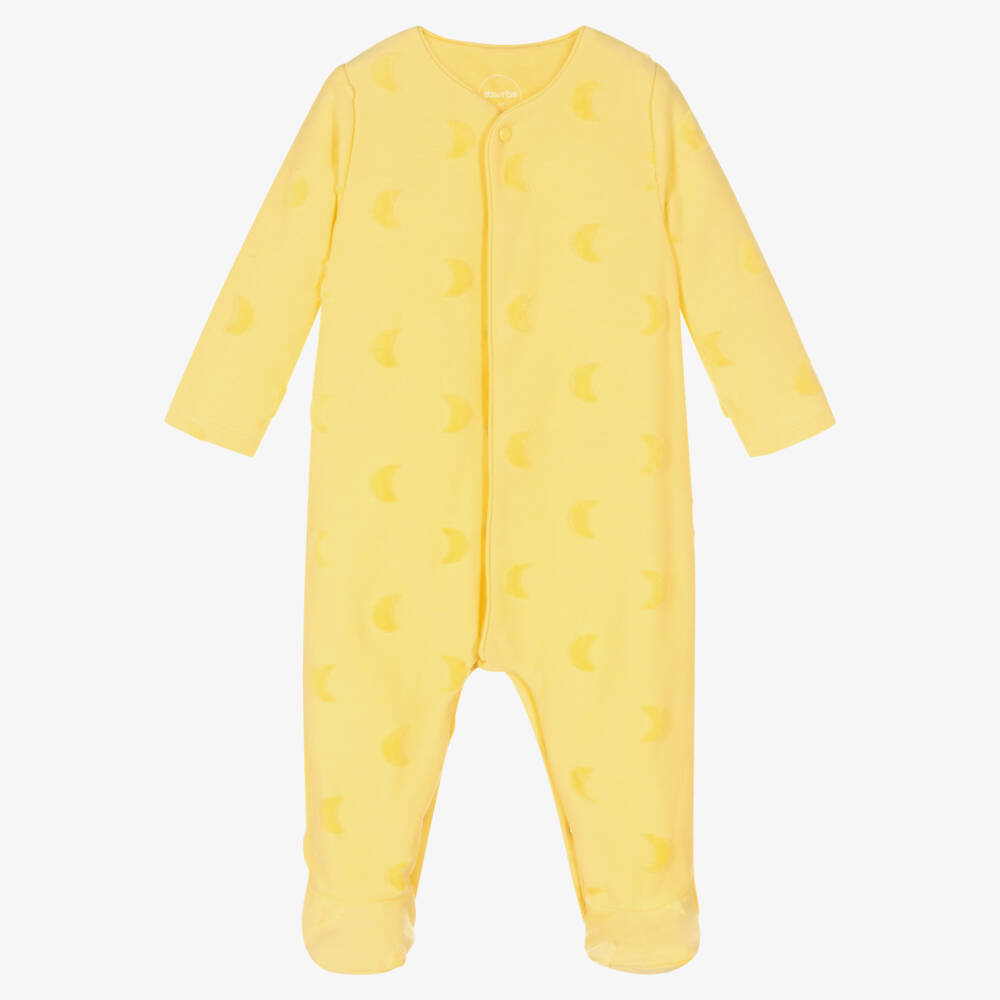 Yellow Cotton & Velour Moon Babygrow