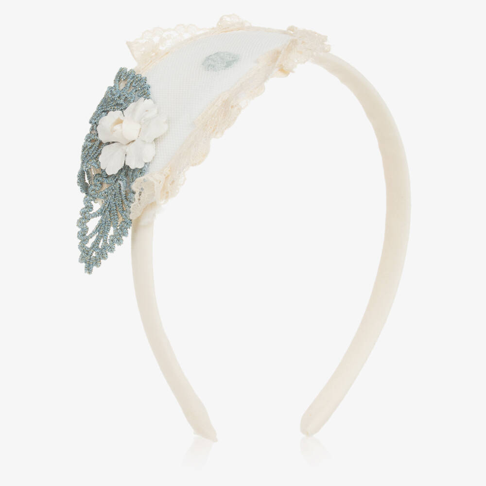 Girls Ivory & Blue Lace Hairband