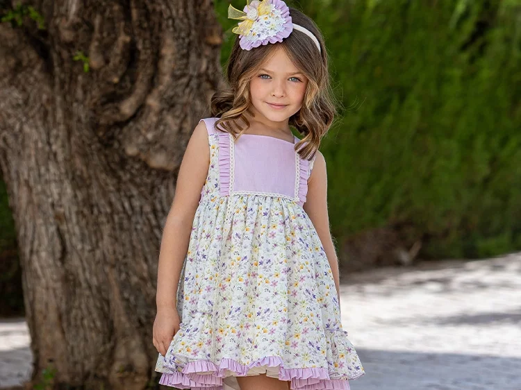 New SeasonAbuela TataGirls Lilac Purple & Yellow Floral Print Dress Set
