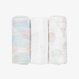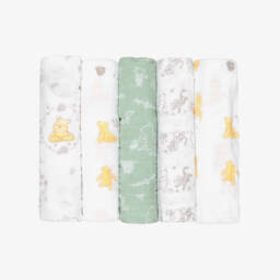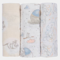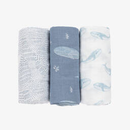 Baby boys and girls pack of two muslins from aden + anais, with different patterns in shades of grey, green and blue. They are made in four layers of the band's signature cotton muslin, which is durable, breathable and gets softer after each wash. Soft and absorbent, these burpy bibs have popper fastenings to keep them in place. They may be used as a full-coverage bib or placed over the shoulder for a non-slip burp cloth.