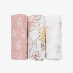Pack of three, white muslin cloths for baby boys and girls by aden + anais, patterned with jungle animals. Made from cotton muslin, these 'musy' squares are soft, absorbent and breathable. Versatile and practical, they can be used as burp cloths, lightweight covers and comforters.