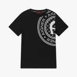 Black cotton T-shirt for boys by AIGNER, made in soft and comfortable jersey. This stylish tee has a striking white circular logo on the front, featuring the brand's signature 'A' horseshoe motif for an unmistakable designer touch.