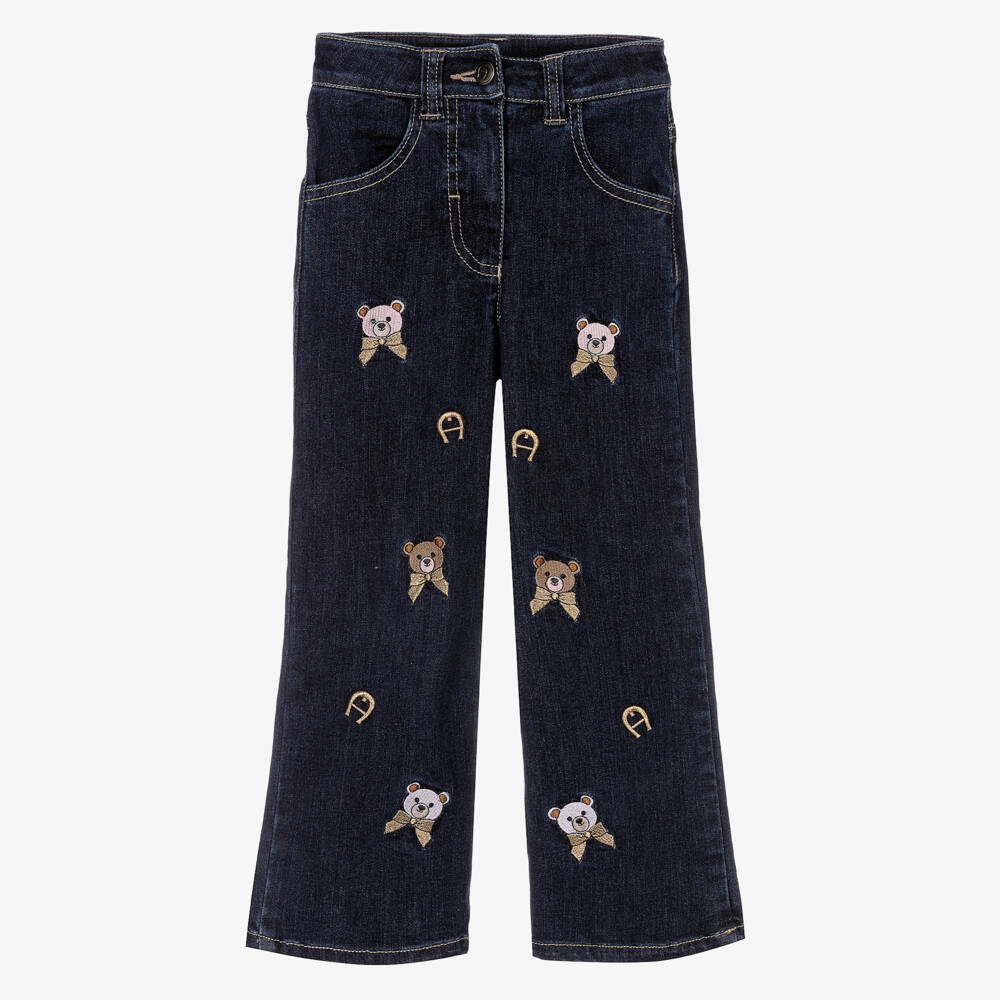Embroidered teddies and logos in pink, beige and gold add a cute touch to these dark blue AIGNER jeans for girls. Made in soft and stretchy denim, they have a relaxed straight fit and pockets on the front and back. The waistband is adjustable for a good fit and they fasten with a zip and branded button.
