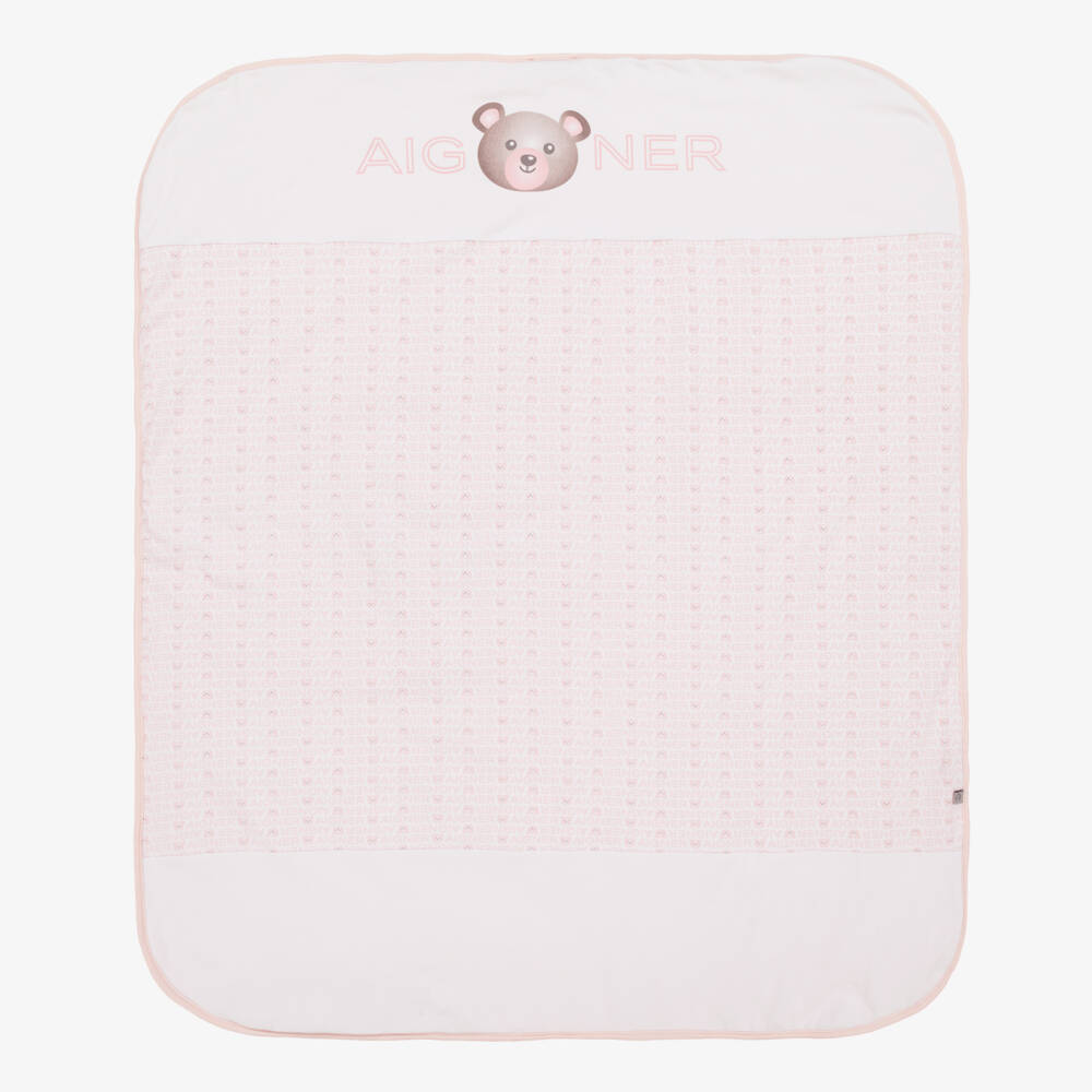 Sweet pink blanket for baby girls by AIGNER, made from super soft Pima cotton jersey with lightweight padding. Providing gentle comfort for delicate skin, this cosy blanket has a cute teddy bear logo pattern and print. A versatile accessory, it is ideal for use in the pram, car seat or nursery, and as a soft surface for tummy time.