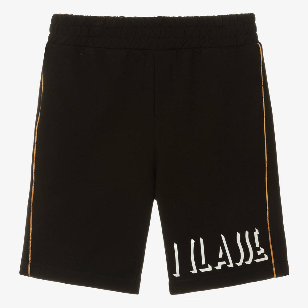 Black shorts for teen boys from Alviero Martini. Trimmed with dark beige Geo Map prints and stamped with the 1a Classe silhouette logo, these cool Italian-made shorts are full of designer appeal. They are made in stretchy, mid-weight cotton jersey, with an elasticated waist for lasting comfort.