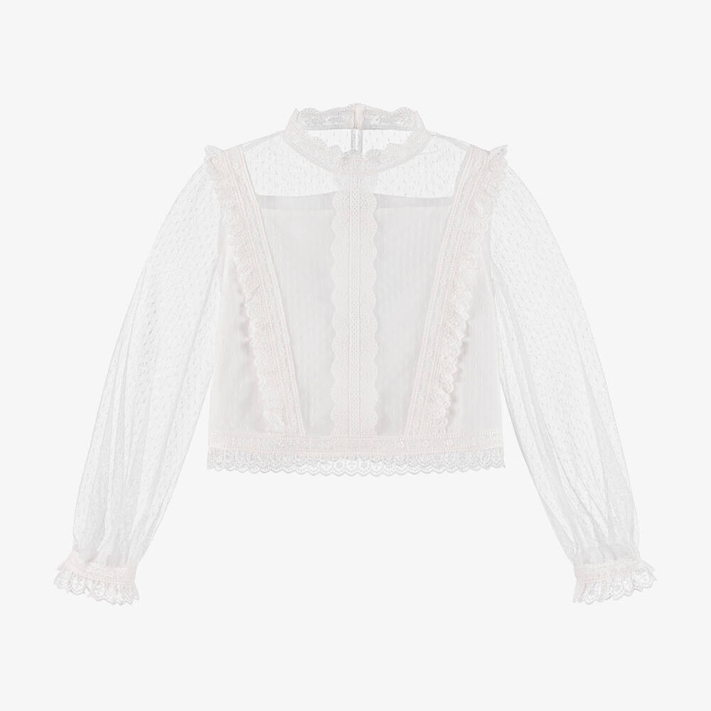 Girls Ivory Embroidered Tulle Blouse
