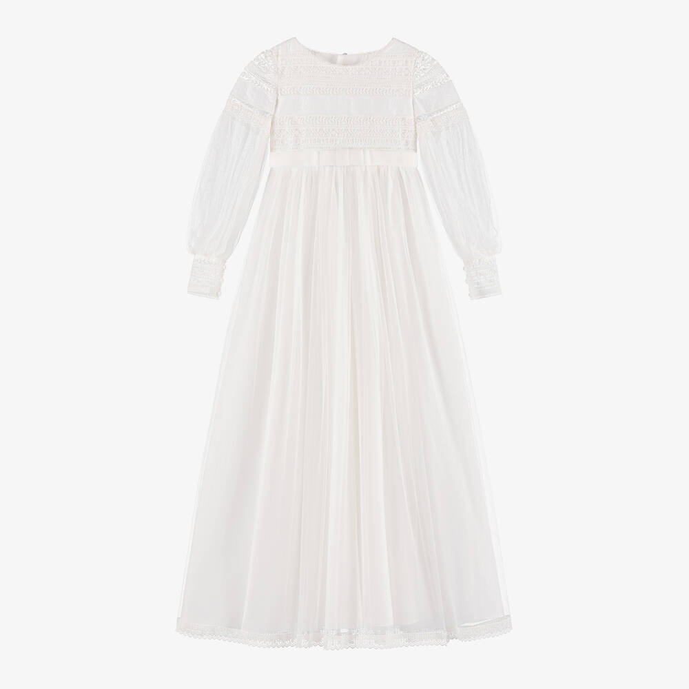 Girls Ivory Embroidered Tulle Dress