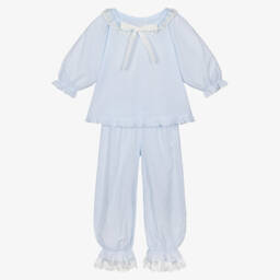Girls Ivory & Blue Floral Cotton Pyjamas