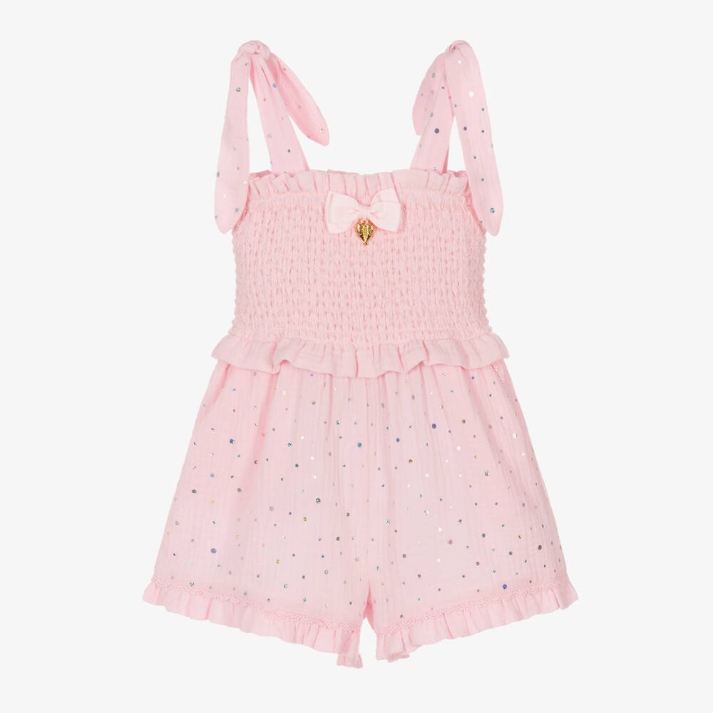 Girls Pink Sequin Cotton Playsuit