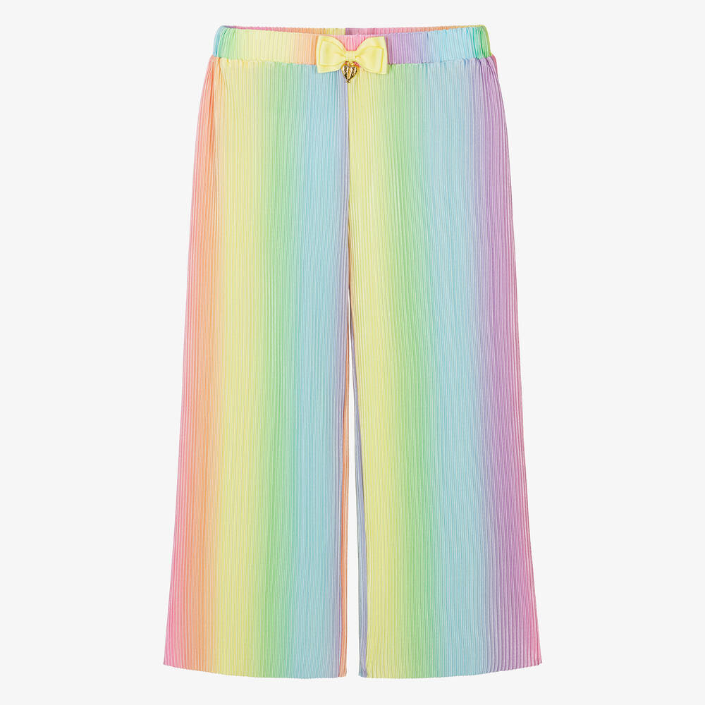 Stunning multicoloured plissé trousers for girls from Angel's Face. With an elasticated waist for comfort, these wide legs trousers are finished with a ribbon bow and the brand's iconic heart logo charm.