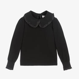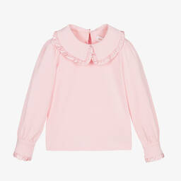 A versatile, off-white cotton jersey top for girls by Angel's Face, with pretty satin ruffles. It has branded gold-tone accent button fastenings on the cuffs and back.
