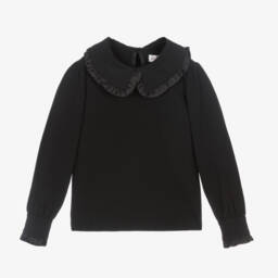 A versatile, off-white cotton jersey top for girls by Angel's Face, with pretty satin frills on the large collar. It has branded gold-tone button fastenings on the back of the neckline and cuffs.