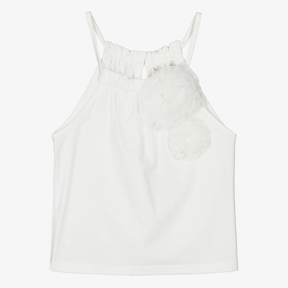 Girls White Cotton Tulle Flower Vest Top