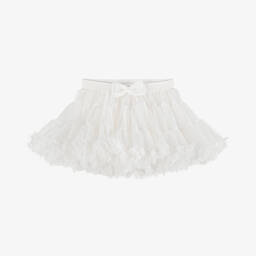 Girls White Guipure Lace Skirt with Bow