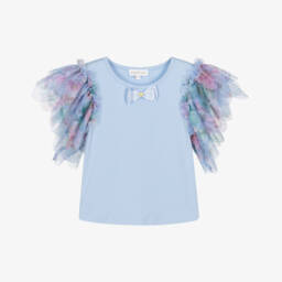 Girls White & Neon Pink Tulle T-Shirt