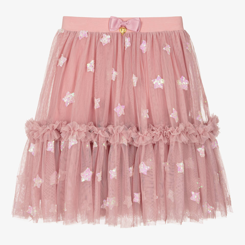 Teen Girls Pink Sequin Stars Tulle Skirt