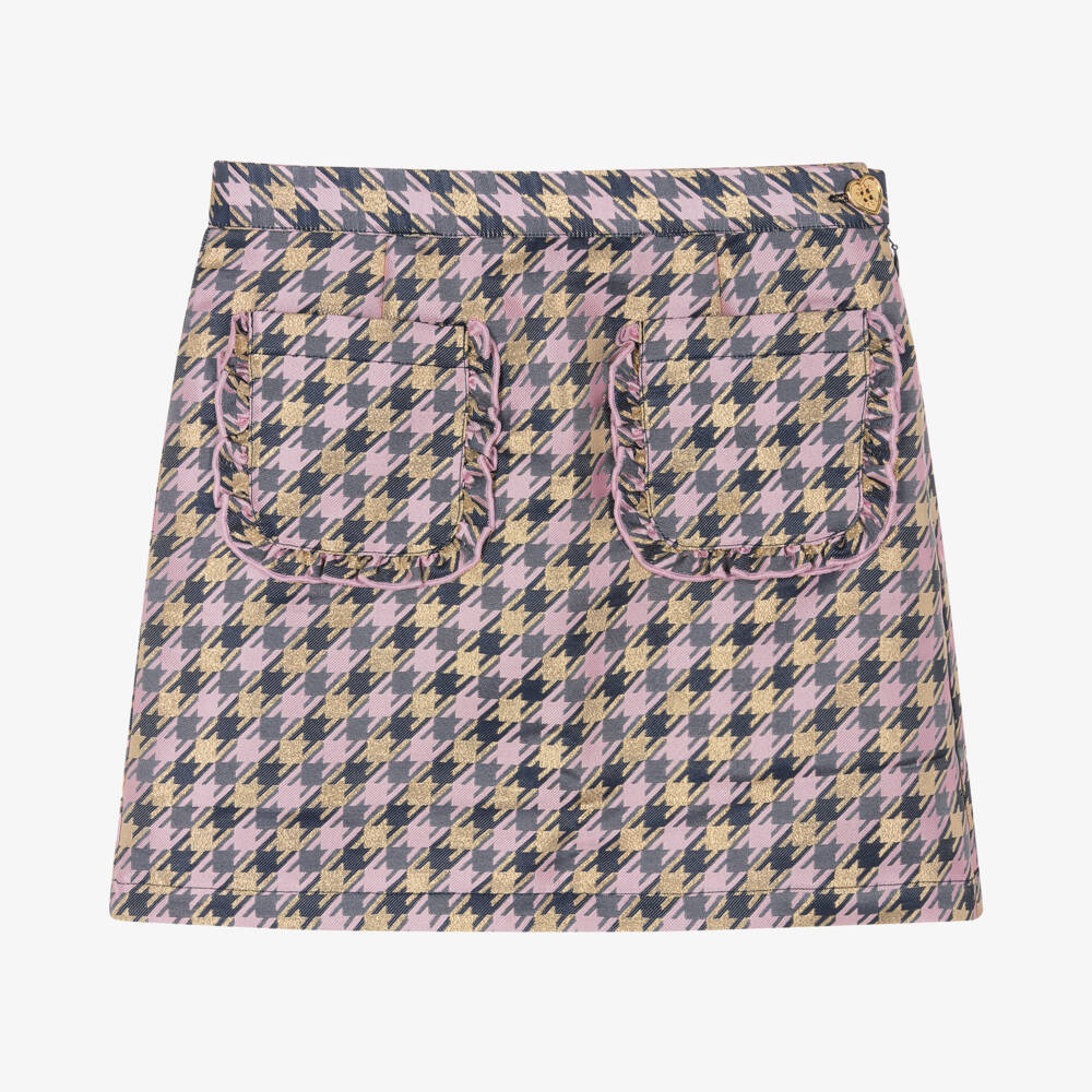 Teen Girls Purple & Gold Houndstooth Skirt