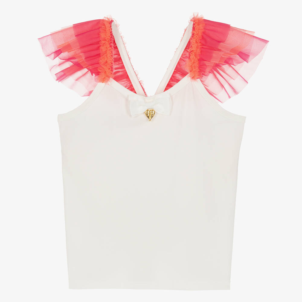 Teen Girls White & Pink Tulle Ruffle Top