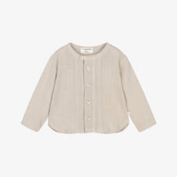 Ivory cotton dungarees for little boys and girls by 1 + in the family, with a navy blue check. Woven with a subtle lattice weave, they have button fastenings on the front and a cute pocket around the back.
