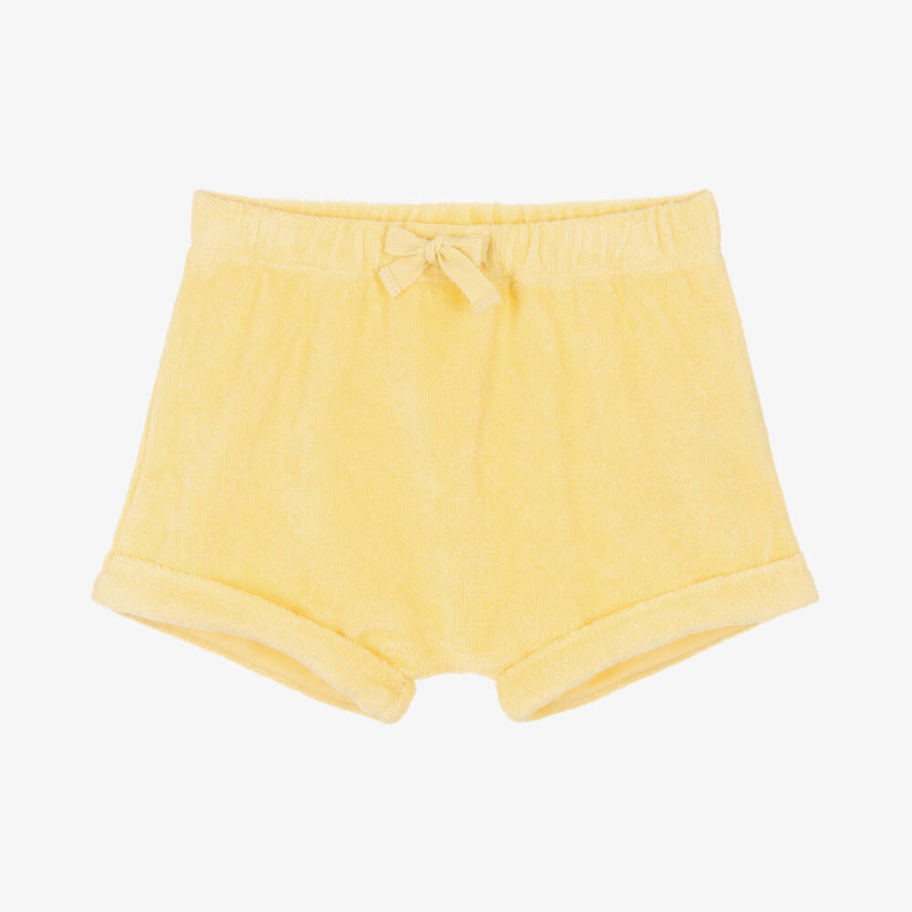 Cute and comfortable, these yellow shorts for baby boys and girls are from French brand, Absorba. Made in beautifully soft organic cotton terry, they have a gently elasticated waistband with a faux drawstring detail and sweet turn-up cuffs.