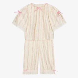 Boys white and navy blue pyjama shorts set by AIGNER, made in soft cotton jersey. The T-shirt is printed with a logo design in shades of blue and the shorts feature an elasticated waist for ease. This comfortable set ensures a relaxed and stylish night's sleep.