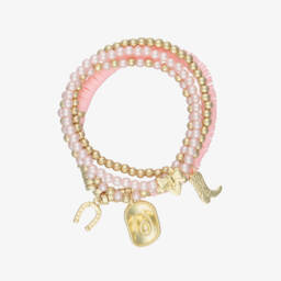 Girls will love this playful set of four bracelets by Angel's Face. On elastic for easy wear, they are made with black and gold-tone beads. Each has a delightful cowboy-themed charm, including a hat and boot, and the brand's signature bow.