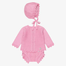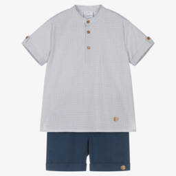 This charming beige shorts set for little boys is by Artesanía Granlei. The white organic cotton shirt has a Peter Pan collar with delicate embroidery detailing. The cardigan is softly knitted for comfort and styled with button fastenings at the top. The set is completed with velvet shorts that have an adjustable waist and a soft lining. All pieces are finished with a signature mother-of-pearl logo charm.