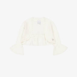 A lovely ivory knitted nest for baby boys and girls by Spanish brand, Artesanía Granlei. It is lightly padded for cosy comfort and has a long side zip to easily get your little one in and out. It has a delicate pattern on the front flap, with beautiful scalloped edges, and a faux mother-of-pearl logo charm on the front.