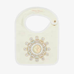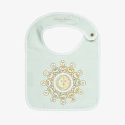 A reversible organic cotton bib for baby boys and girls by Atelier Choux Paris, in a lovely shade of aqua blue. Made in fine satin, this luxury feeding accessory features beautifully designed zodiac-inspired illustrations, with an adjustable popper for fastening.