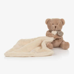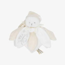A lovely pink comforter for baby girls by Aurora, handmade from super soft plush with a velour panel at the back. Wonderfully cuddly, it has a sweet padded rabbit head in the centre with black embroidered eyes and long floppy ears. Small in size, it is easy for a baby to hold and cuddle.