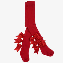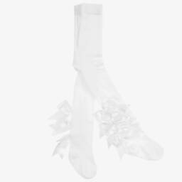 Ivory cotton blend tights for little girls by Beau KiD. Soft and stretchy, they have pretty satin bows on the back.