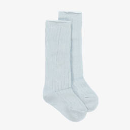 White knitted knee high socks for boys and girls by Beau KiD. Finely ribbed, they are made in a soft and stretchy cotton blend.