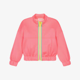 An adorable zip-up top in pink for younger girls by Billieblush, decorated with gold, iridescent and pink sequins. Made in a comfortable, mid-weight jersey, this long-sleeved top has floppy bunny rabbit ears on the hood, little pockets on the front, and a pink logo tab on the side. The easy-fastening front zip has a neon pink pull and a protective chin guard.