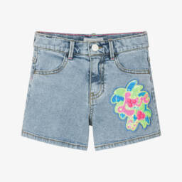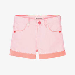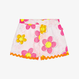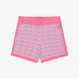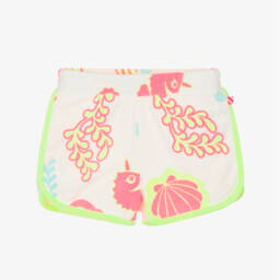 White shorts for girls by Billieblush, made in soft, mid-weight cotton sweatshirt jersey. Part of the Tweety caspule, these fun shorts have an eye-catching Tweety Pie pattern in shades of pink, green and purple, with matching logo prints. Adding a cololurful finish, they have ribbed trims in neon yellow and a comfortable neon pink elasticated waistband.
