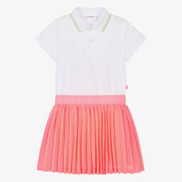 Girls white cotton dress by Billieblush, with playful multi-coloured plumeti dots is a charming addition to any wardrobe. Made from lightweight voile, this tiered dress has free and delightful movement. The shirred bodice ensures a comfortable fit making it ideal for warm, sunny days.