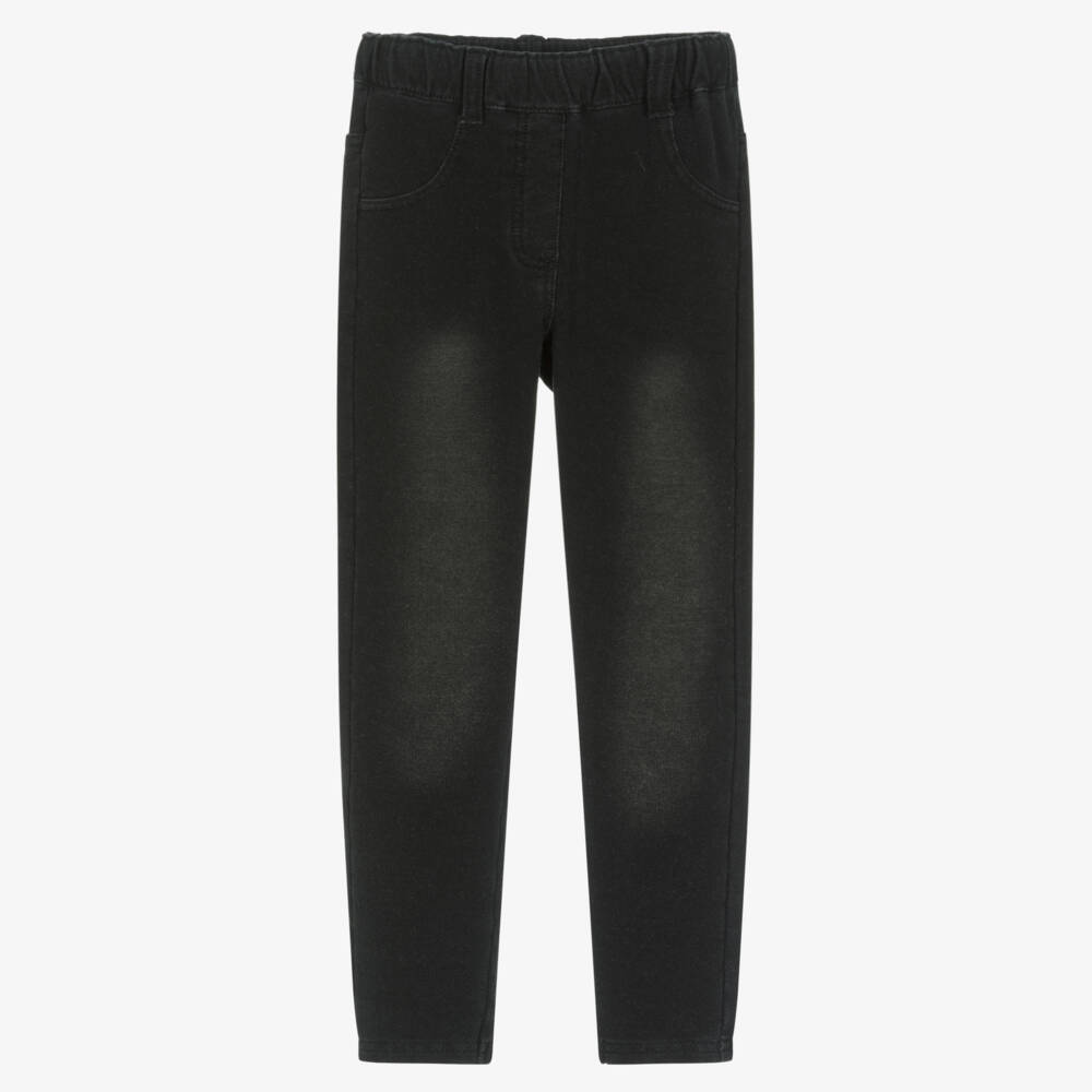 Black-washed jeggings for girls by Boboli, made in a soft denim look cotton blend with the comfort and stretch of jersey. Easy to pull on, they have an elasticated waistband for a comfortable fit. There are faux pockets on the front, two pockets.and a little logo tab on the back.