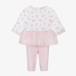 Pretty leggings set for girls by Spanish brand Boboli, just right for casual days. The green cotton sweatshirt is made in soft, comfortable jersey, with beautiful floral embroidery on the front and sweet frills around the shoulders. It has a warm, fleecy inside and cosy, ribbed trims, with a logo patch on the hemline. The stretchy brown corduroy leggings have an elasticated waistband, are full length and simply pull up.