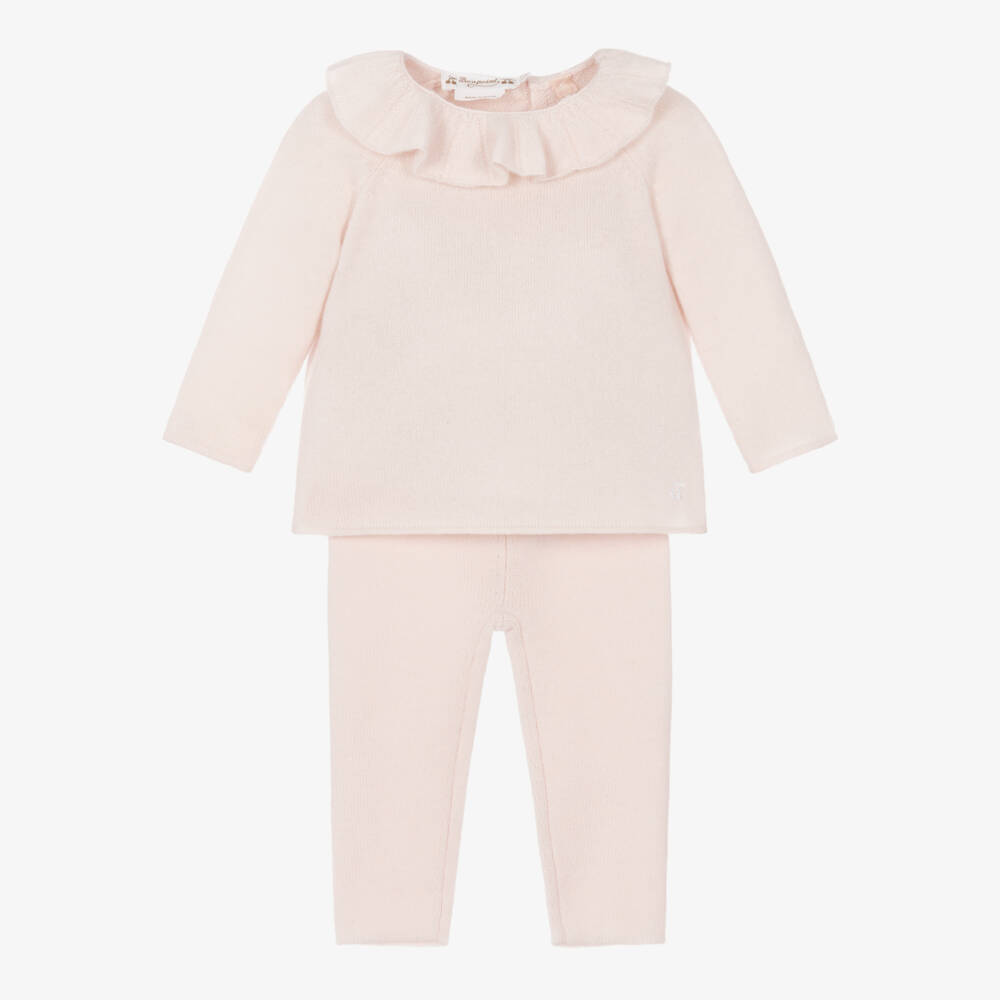 طقم بنطلون كشمير محبوك لون زهري للمولودات