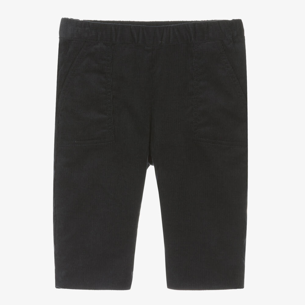 Cute navy blue trousers for little boys by French brand Bonpoint, made in soft cotton needlecord. They have a lightweight lining for comfort and patch pockets on the front. The waistband is elasticated for a good fit and the cuffs can be worn turned up or down.
