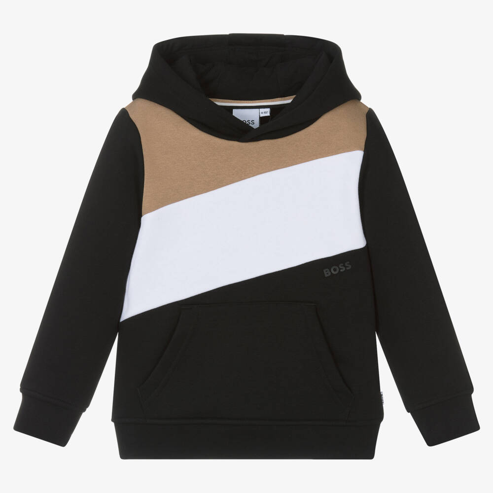 In the brand's signature colours of black, white and beige, this cotton-blend Mini-me hoodie for boys is by BOSS. Made in soft jersey with a cosy fleecy inside, it has ribbed trims and a sporty pouch pocket on the front. There is signature striped trim on the inside neckline, with a small rubberised logo on the front and a logo tab at the side seam.