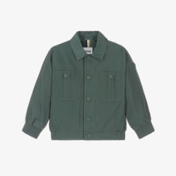 A navy blue water-repellent bomber jacket for boys by BOSS. Silky smooth and lightweight, it has a tonal Double B monogram jacquard pattern, a contrasting white stripe on the ribbed trims and a full lining for extra comfort. It fastens with a branded silver zip and has two pockets on the front.