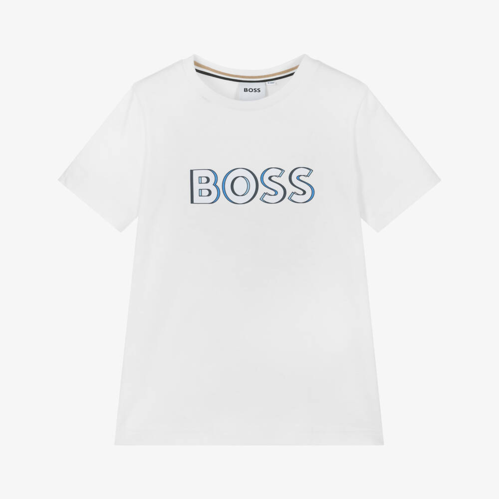 Cool and casual white T-shirt for boys by BOSS, made in soft cotton jersey. This wardrobe staple is finished with a large 3D effect logo print on the front for instant brand recognition.