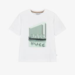 A white T-shirt for girls by BOSS, patterned with a Lola Bunny rabbit logo and colourful sequin detailing. This classic crew neck top is made in a soft cotton jersey blend for comfortable wear.