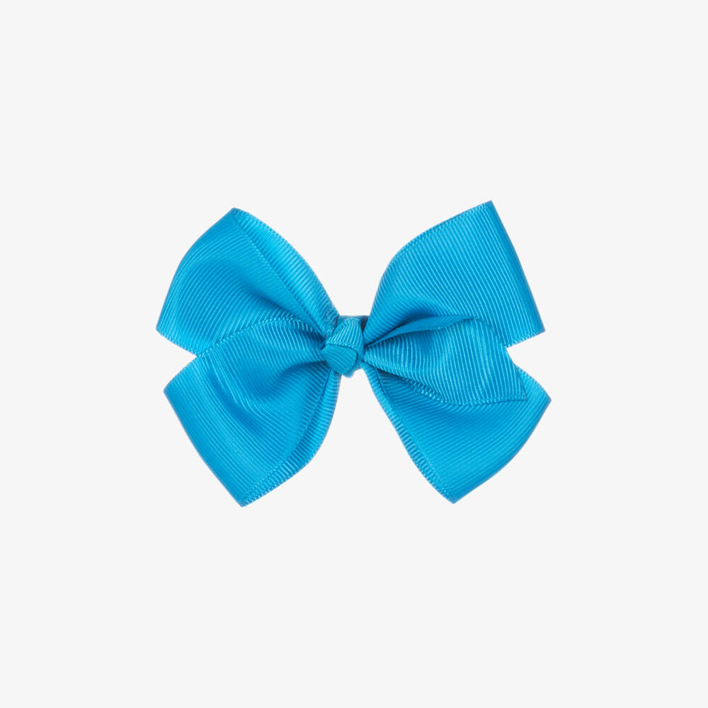 A bright blue hair clip for girls by Bowtique London, lovely to accessorise an outfit. The bow is handmade in delicate grosgrain ribbon and set on a slide-in metal clip.