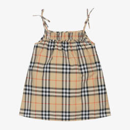 An ivory dress for girls by Burberry, made in a soft, crinkled blend of viscose and cupro. Gathered lightly on the neckline, this beautiful design is signed with the luxury brand's distinctive Equestrian Knight Design embroidered in complementary green, yellow, pink and blue. In a stylish trapeze silhouette, it has short sleeves with a capped effect, a feminine scooped back, and a gentle-on-the-skin cotton lining. The side zip is hidden for a seamless look and the convenient side pockets are just right to hold her small essentials.