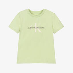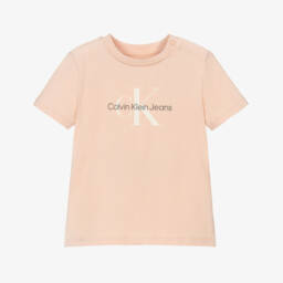 Pale pink T-shirt for little girls by Calvin Klein, made in soft cotton jersey. This casual tee has the signature CK logo graphic on the front in ivory for instant brand appeal.
